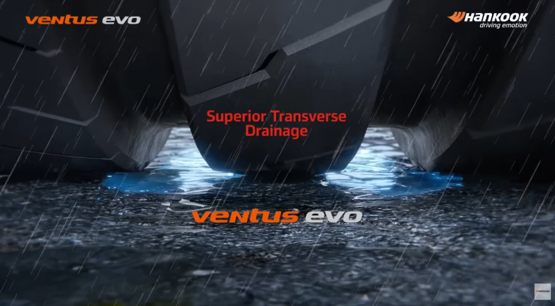 Išplatinti skersiniai ir šoniniai vandens šalinimo grioveliai bei optimizuotos protektoriaus zonos griovelių geometrija užtikrina itin efektyvų vandens pašalinimą iš padangos kontakto su kelio danga zonos. Tai padeda sumažinti akvaplanavimo riziką ir išlaikyti stabilų sukibimą net intensyvaus lietaus sąlygomis.