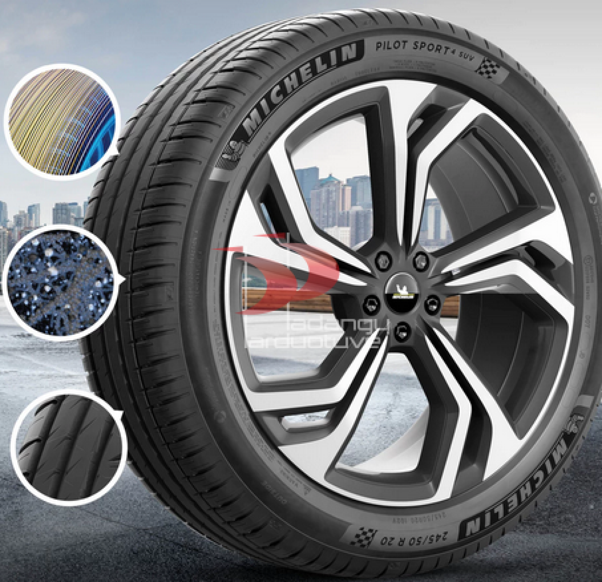 Dual Sport protektoriaus raštas užtikrina, kad ši padanga turės maksimaliai gerą sukibimą su sausa kelio danga ir ypač gerą stabdymą ant šlapios kelio dangos. Michelin Pilot Sport 4 SUV padanga yra skirta dideliems, galingiems ir sportiškiems visureigiams. Ši didelio našumo padanga su „MaxTouch“ technologija ir didelio tankio dvigubu korpusu užtikrina ilgą padangos tarnavimo laiką. Šios padangos buvo sukurtos komfortui ir triukšmo mažinimui. Specialiai sukurtas padangos protektorius sumažina triukšmą, o padangos karkaso struktūra yra optimizuota taip, kad maksimaliai padidintų komfortą.„MICHELIN Pilot Sport 4 SUV“ - specialiai sukurtos aukščiausios klasės visureigiams, suteikiančios automobiliams puikų valdymą ir komfortišką vairavimą. Asimetrinio protektoriaus rašto ypatumai: išorinė dalis yra skirta sausoms sąlygoms, o vidinė dalis atsakinga už šlapią kelią. „Dynamic Response“ technologija užtikrina važiavimo tikslumą ir stabilumą. Standus protektoriaus raštas su įvairiapusėmis įpjovomis garantuoja puikų stabdymą sausame kelyje. Ypatingas mišinys su specifinėmis inovatyviomis priemaišomis bei silica junginiu užtikrina puikų sukibimą ir stabdymą šlapiame kelyje.