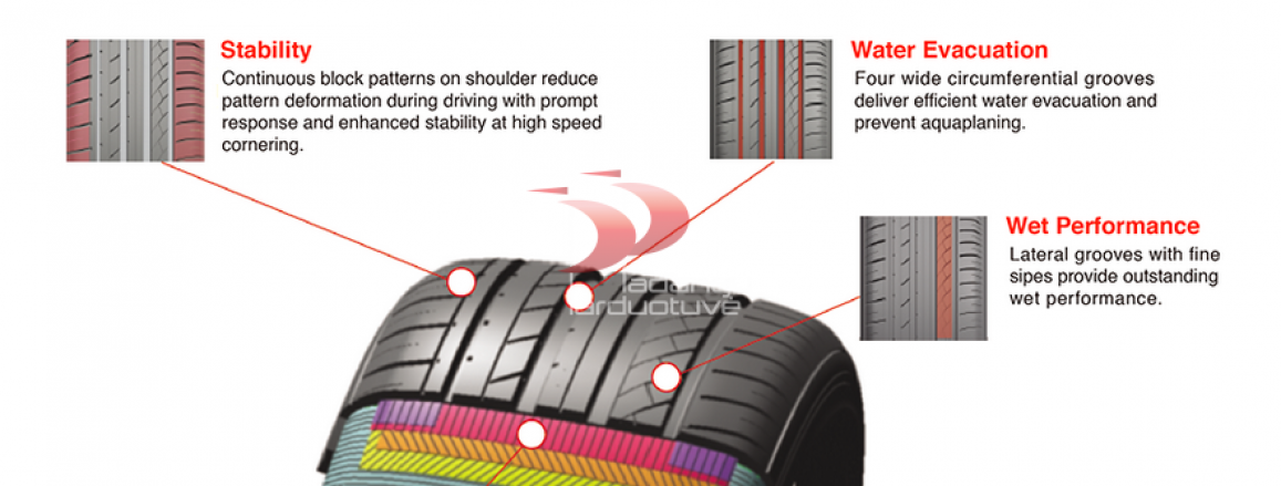 Ištisinių blokelių dizainas padangos protektoriaus šone sumažina padangos deformaciją ir suteikia stabilumą posūkiuose važiuojant net ir dideliu greičiu. Platūs išilginiai grioveliai suteikia efektyvų vandens šalinimą ir sumažina akvaplanavimo riziką. Šoniniai grioveliai su smulkiomis lamelėmis suteikia puikų sukibimą su šlapia kelio danga.Asimetrinė vasarinė padanga lengviesiems automobiliams. Kokybiškas gumos mišinys leidžia saugiai važiuoti tiek sausame, tiek šlapiame kelyje, užtikrina puikias stabdymo ir akvaplanavimo savybes.