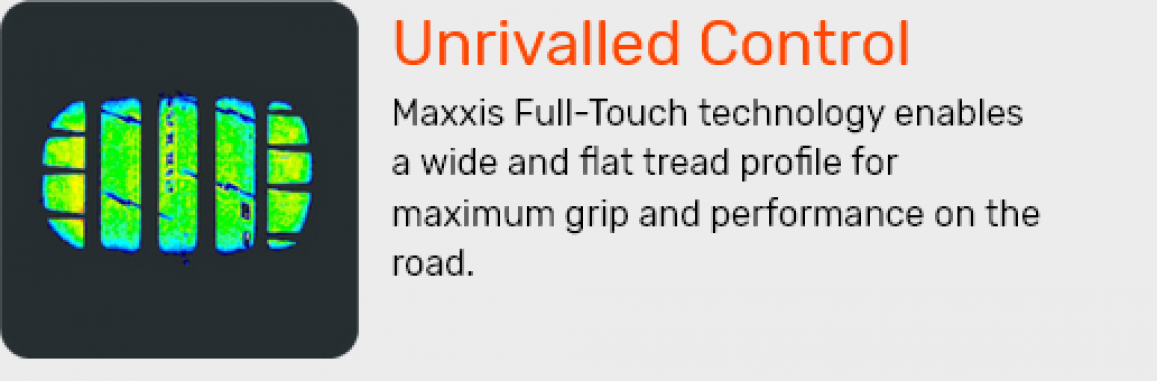 Maxxis Full-Touch™ technologija užtikrina optimalų padangos kontaktą su kelio danga, suteikdama išskirtinę važiavimo kontrolę ir stabilumą. Platus kontaktinis paviršius pagerina sukibimą, padidina valdymo tikslumą bei važiavimo efektyvumą, suteikiant pasitikėjimo tiek posūkiuose, tiek važiuojant didesniu greičiu. Ši technologija ne tik gerina komfortą, bet ir padeda sumažinti protektoriaus nusidėvėjimą, užtikrinant ilgesnį padangos tarnavimo laiką.
