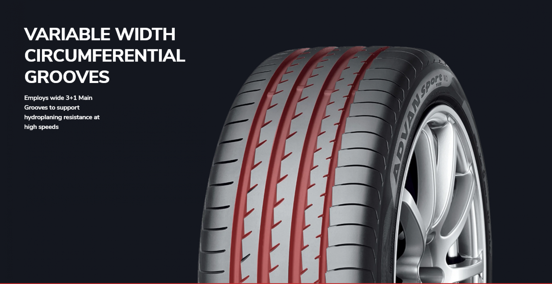 Yokohama Advan Sport V105 vasarinės padangos sukurtos sportiškam ir preciziškam vairavimui. Kintamo pločio išilginiai protektoriaus grioveliai užtikrina efektyvų vandens šalinimą, o plati 3+1 pagrindinių griovelių konfigūracija padidina atsparumą akvaplanavimui ir palaiko stabilų sukibimą šlapioje kelio dangoje net esant dideliam greičiui.